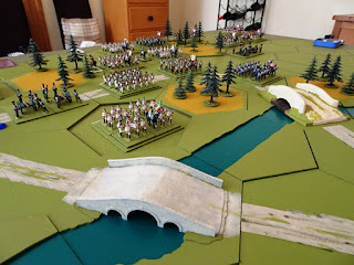 | The view from the Austrian left. Archduke John has only 26 units but his position is a strong defensive one. |