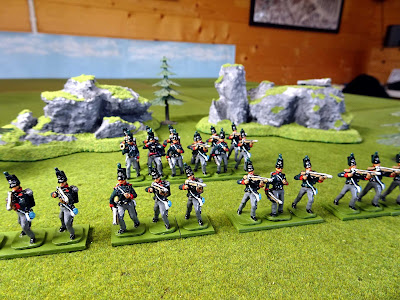 Truly a wonderful looking unit of lovely figures. Still didn't notice Sweet William's false teeth though. :) I also love the look of the granite outcrops of rock. Perfect for a Peninsular war setting. Are those home-made?